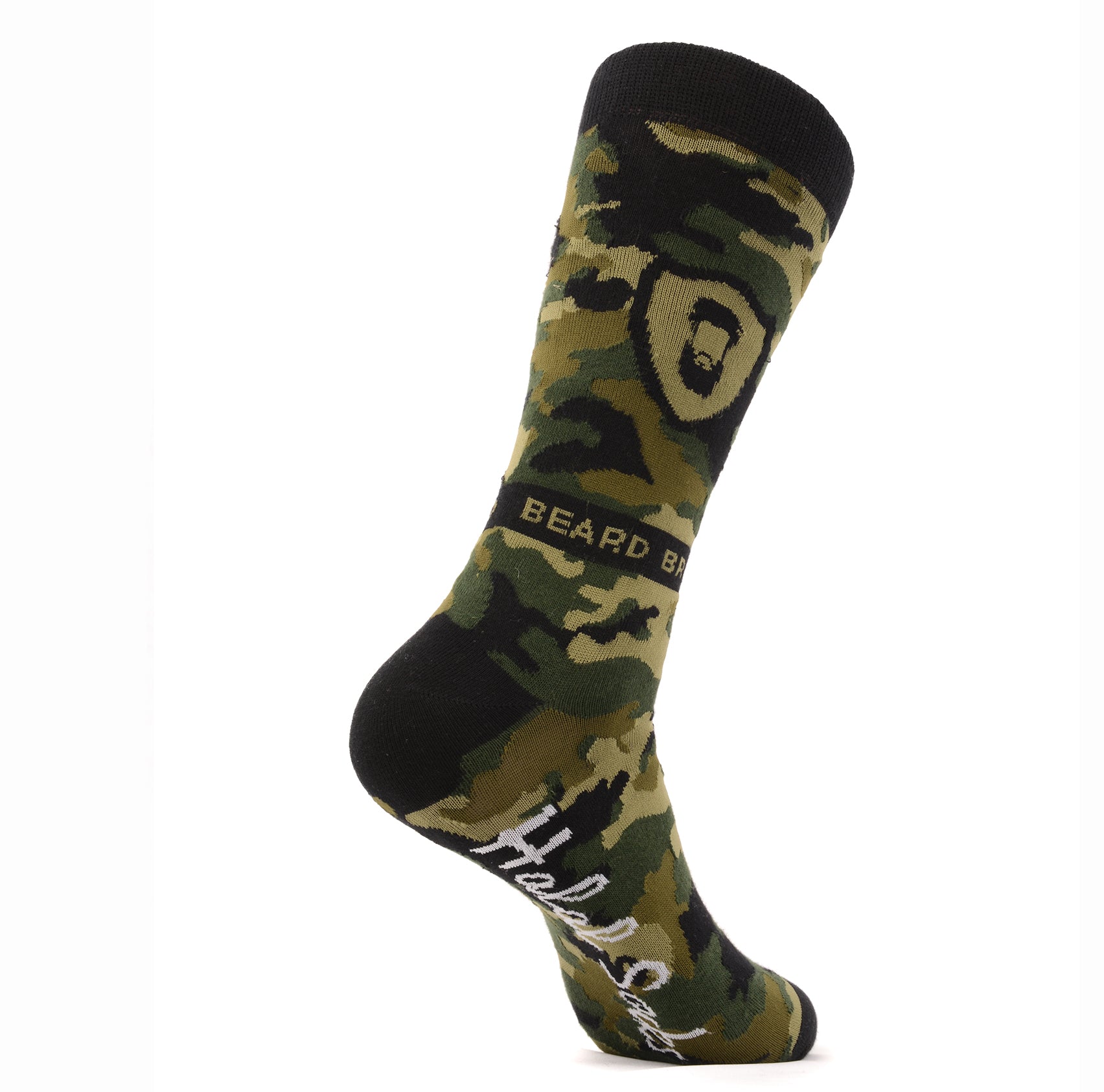 Upgrade your fashion game with the Beard Bro Camo socks! These comfortable and stylish socks come in popular black and green shades, perfect for any outfit. Part of the Beard Bro series, join another Beard Bro and wear matching socks in red and blue. Elevate your style with these eye-catching socks.