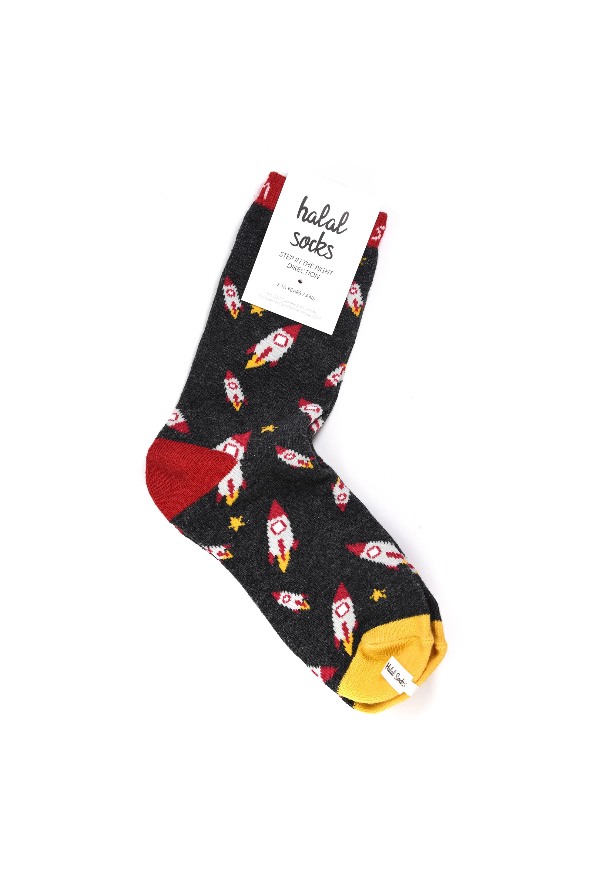 Take your kids on a playful journey to Jannah with our Rockets to Jannah socks! Available in sizes 4-6yrs and 7-10yrs, these socks feature rockets and the phrase "Rockets to Jannah" on the cuff. The fun yellow toe and red heel colors add an extra touch of excitement for your little explorers.
