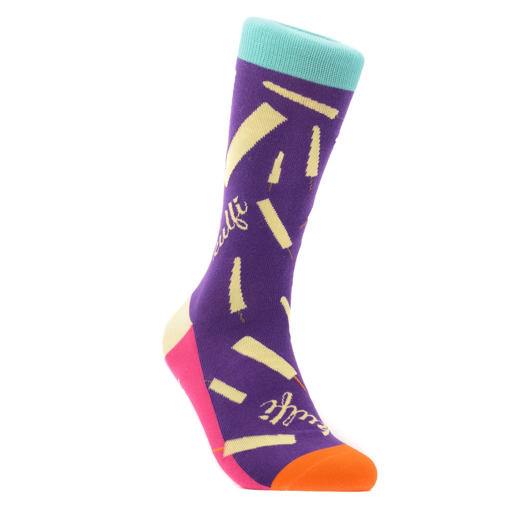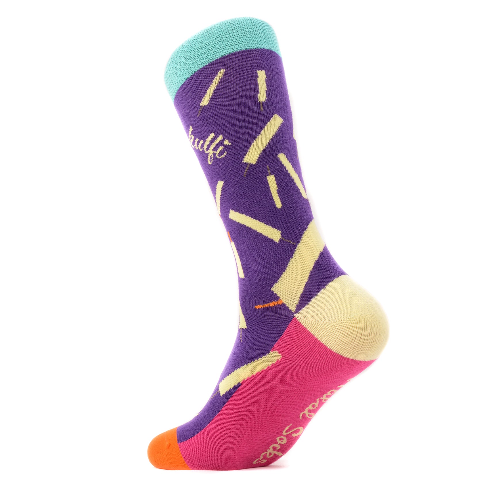 Having Kulfi cravings? Satisfy your sweet tooth with some sweet socks. Enjoy a summer rainbow of vibrant colours featuring creamy Kulfi designs. These socks will add a serving of cool to your outfit this summer.