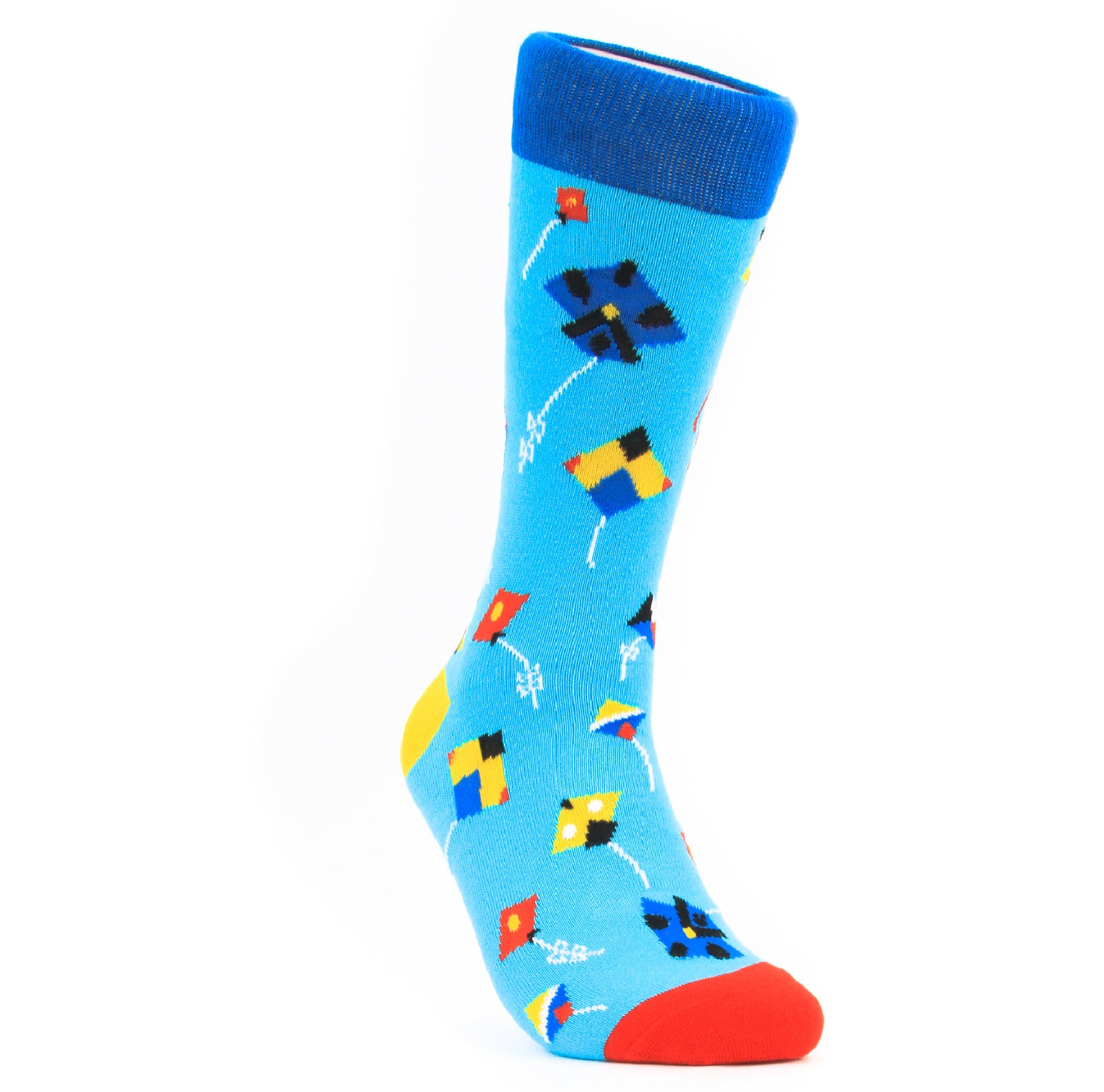 Experience the thrill of the Pataang / Kite Crew socks! Inspired by the South Asian festival of kites, these socks feature vibrant kites soaring across the sky. A must-have for any kite enthusiast, these socks will add a touch of adventure and culture to your outfit. Fly high with Pataang socks!
