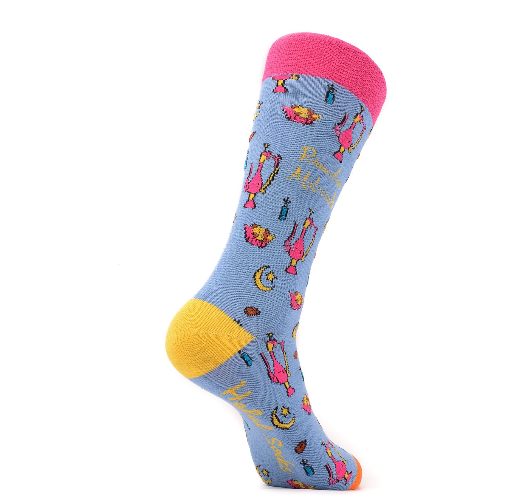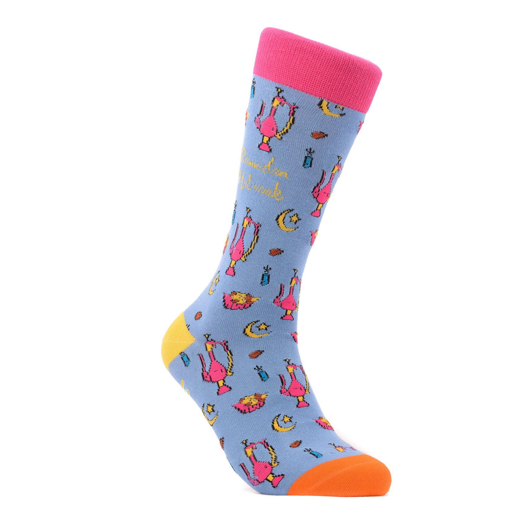 Celebrate Ramadan with our special socks! Each pair features a "Ramadan Mubarak" design on the cuff, along with sherbet, dates, and festive colors. Stay comfortable and stylish during this holy month.
