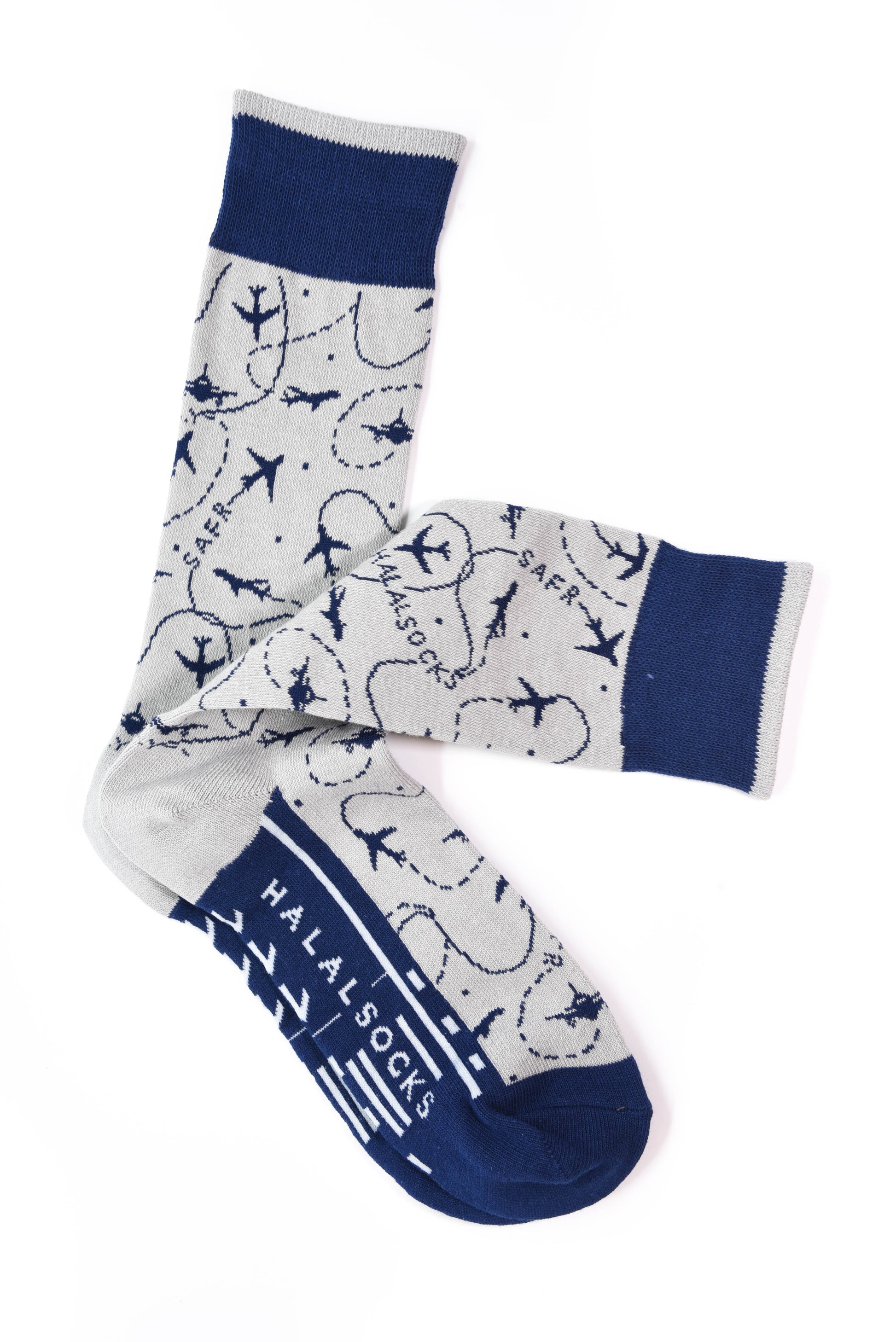 Bump up your style from coach to first class with this fly pair. Airplanes with the words SAFR and TRAVEL are en route to elevate your sock game.